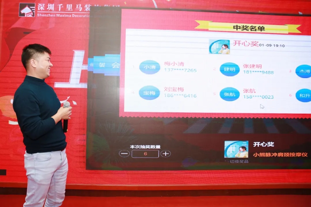 隨著晚會的推進,最讓人激動人心的年會幸運抽獎環節隨之而來,為了讓與會的員工都能滿載而歸,此次晚會準備了豐富的獎品及多份高額大獎,隨著一份份大獎驚喜而又溫馨的送出,現場笑聲、掌聲、歡呼聲不斷在整場活動中蕩漾,將晚會氣氛推向高潮。