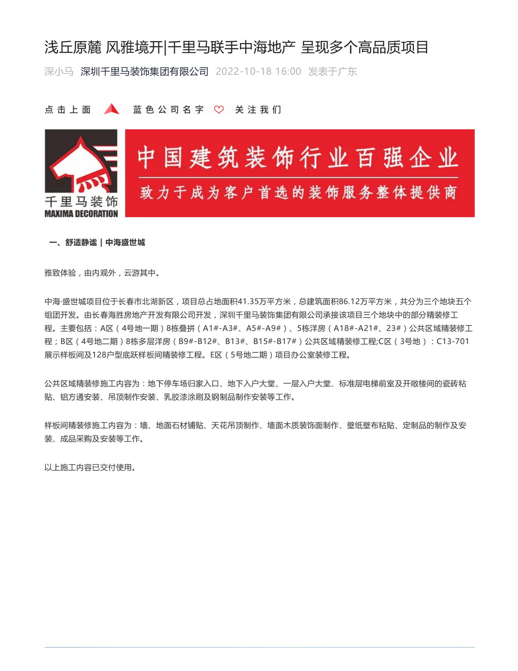 深圳千里馬裝飾集團近期中標項目